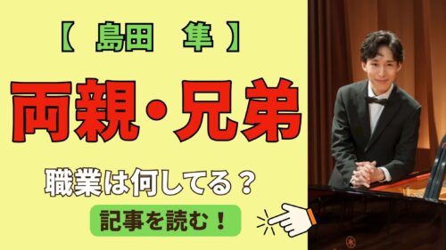 2025年10月に「第19回ショパン国際ピアノコンクール」にピアニストとして出場された島田隼(しまだじゅん)さん。 この記事では島田隼さんの両親の職業は何なのでしょうか。兄弟の顔画像や名前、年齢を紹介します。 島田隼の父親の職業は何?名前や年齢、...