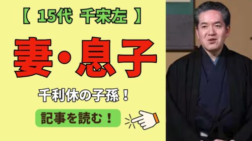 千利休の子孫、千宗左さんの妻と息子の職業は何なのか。 名前や年齢、顔画像を調査しました! さっそく見ていきましょう。 【千利休の子孫】千宗左(15代)の妻の名前、年齢、顔画像や職業は何? 千宗左さんの妻はどんな人なのでしょう。 やはり千宗左さんと... -