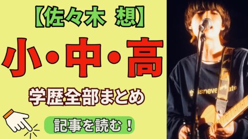 Z世代に大人気のシャイトープ佐々木想さん。 彼の小・中・高校全部まとめてみました! 大学の専攻は何だったのかも詳しく見ていきましょう。 【学歴】シャイトープ佐々木想の小学校は広島のどこ? シャイトープのボーカル・佐々木想さんの学歴が気になりま... -