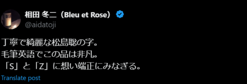 松島聡さんの字が綺麗と評判です。