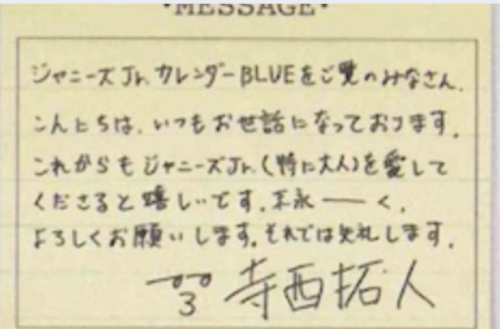 寺西拓人さんも美文字のようです。